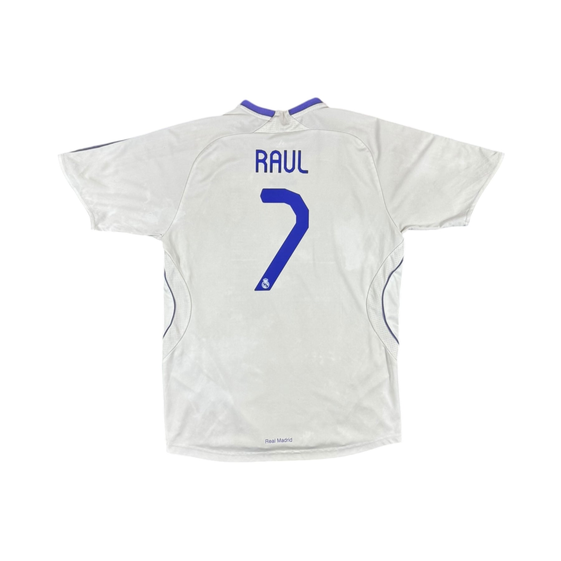 The 2007–08 Real Madrid Adidas Home Shirt #7 was worn by Raúl González during a La Liga season featuring key teammates such as Iker Casillas, Ruud van Nistelrooy, and David Beckham. Real Madrid competed at the top of Spanish and European football under manager Bernd Schuster, showcasing attacking creativity and midfield control.