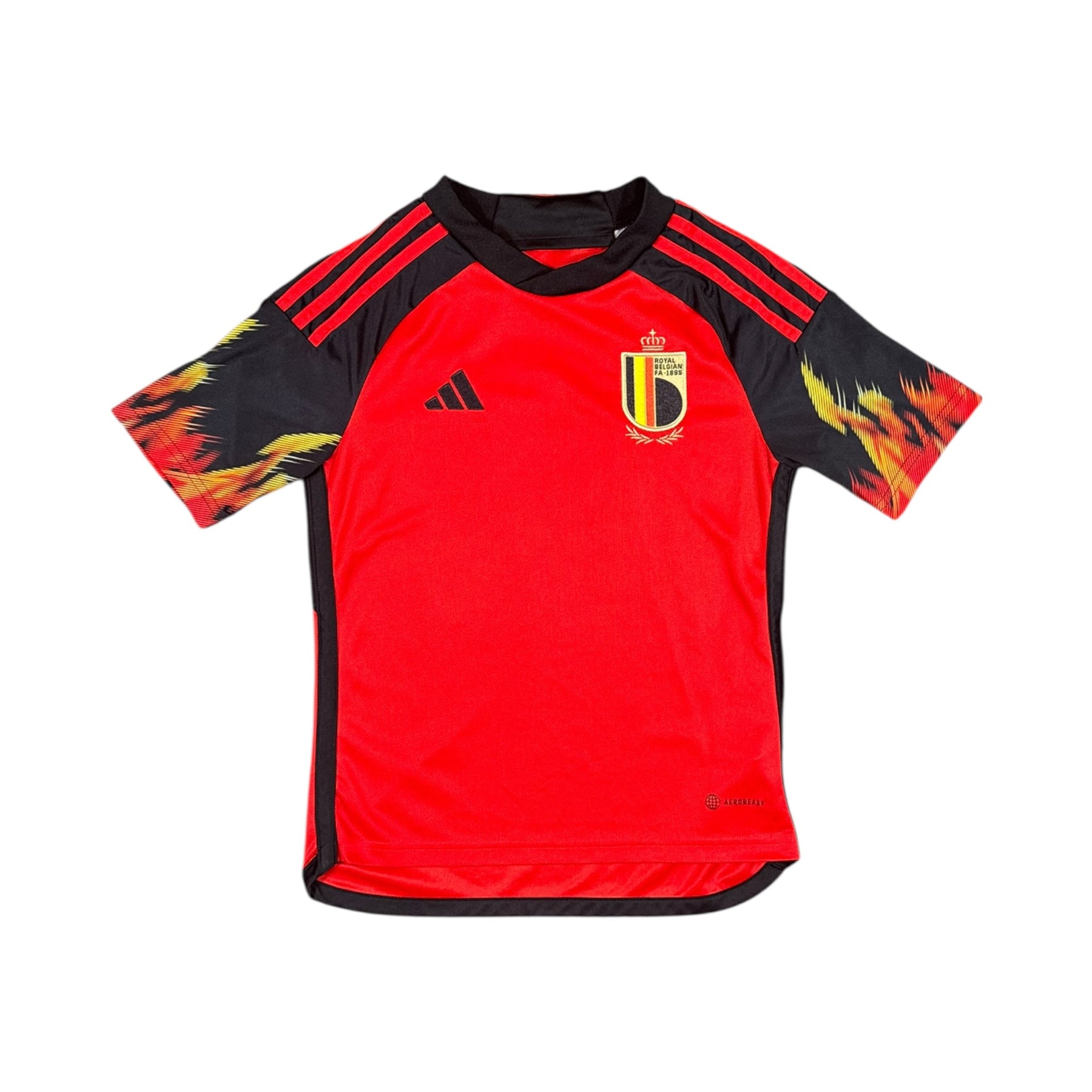 The 2022–23 Belgium Football Adidas Home Shirt #7 DE BRUYNE, worn by star midfielder Kevin De Bruyne. Featuring Belgium’s iconic red home design, this shirt represents a season where the Red Devils competed in UEFA Nations League and international friendlies, with De Bruyne orchestrating the attack and providing key goals and assists.