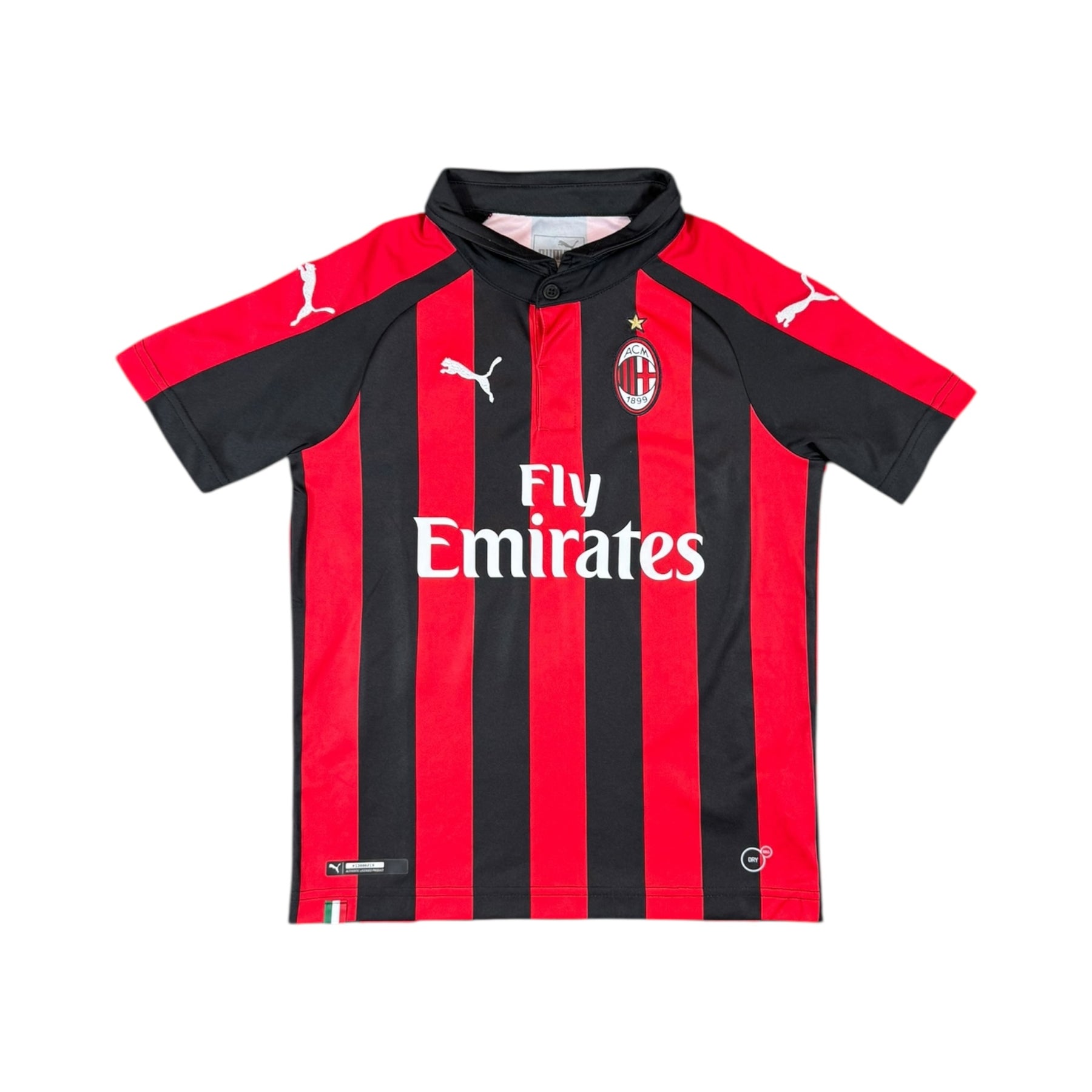 The 2018-19 AC Milan Puma Home Shirt was worn during a transitional Serie A season where Milan finished 5th, with key players such as Gianluigi Donnarumma, Hakan Çalhanoğlu, Suso, Patrick Cutrone, and Lucas Paquetá making important contributions.