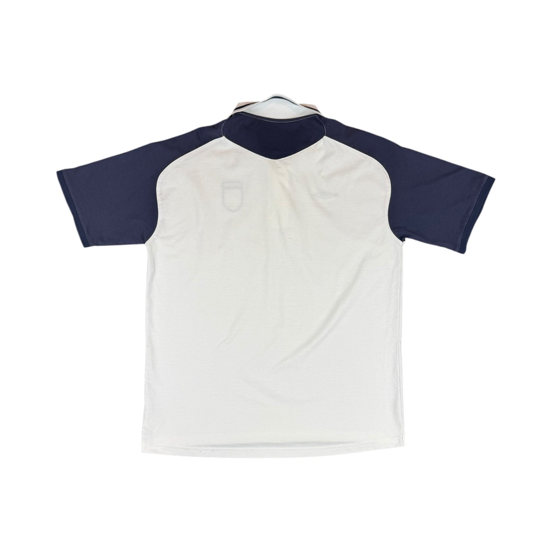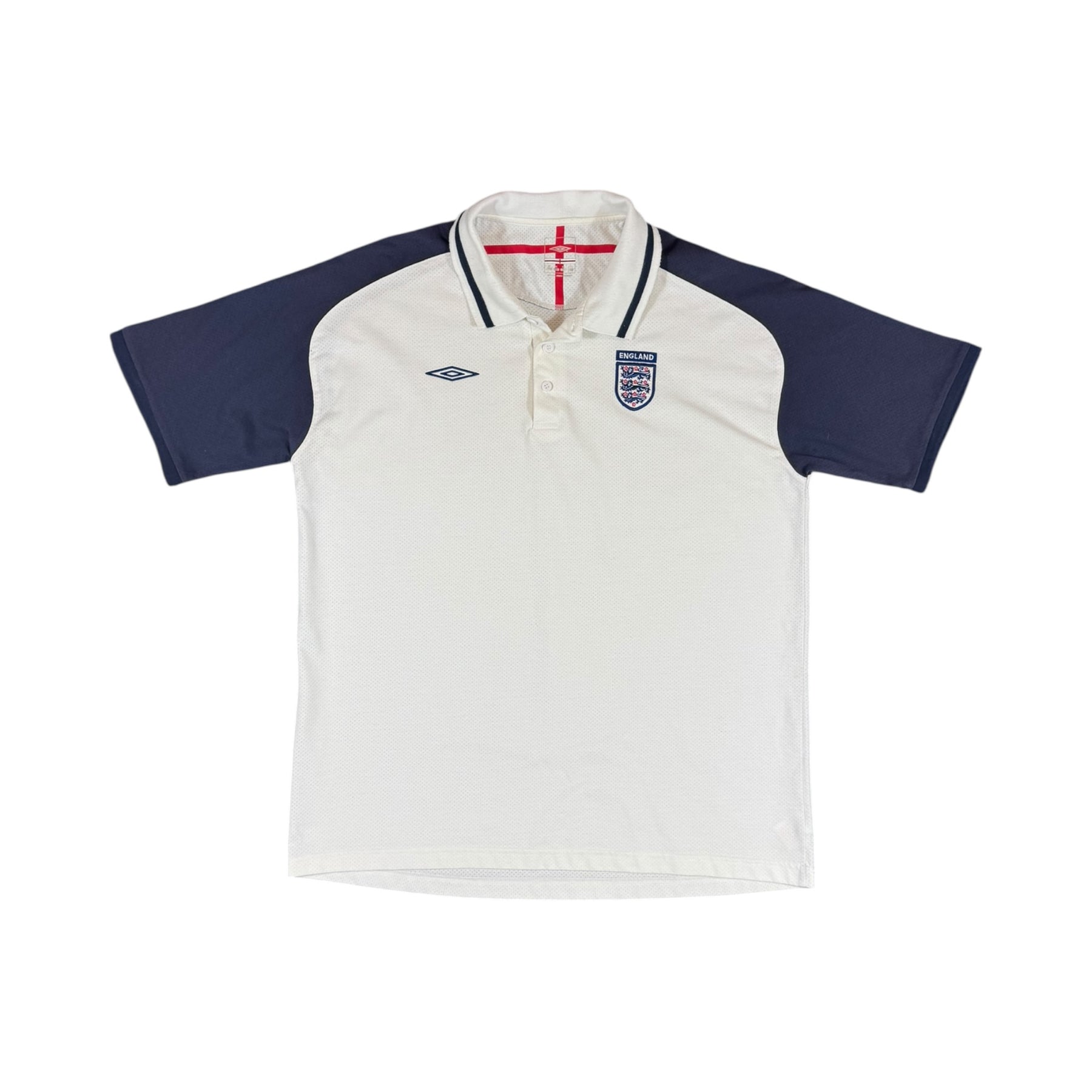 Worn by the England national football team during the 2002–04 period, this team polo comes from campaigns including the 2002 FIFA World Cup, where England reached the quarter-finals, and UEFA Euro 2004 qualifying. The squad featured key players such as David Beckham, Michael Owen, Steven Gerrard, Paul Scholes, and Rio Ferdinand