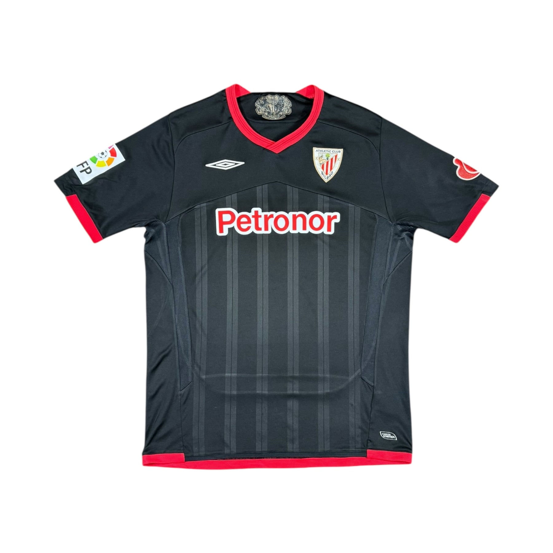 The 2009–10 Athletic Bilbao Umbro Third Shirt features a bold dark design with red accents, offering a modern alternative to the club’s traditional home colours. Worn by stars such as Fernando Llorente, Ander Herrera, and Javi Martínez, this shirt was part of Athletic Bilbao’s La Liga campaign, showcasing the team’s competitive spirit and commitment to developing local talent.