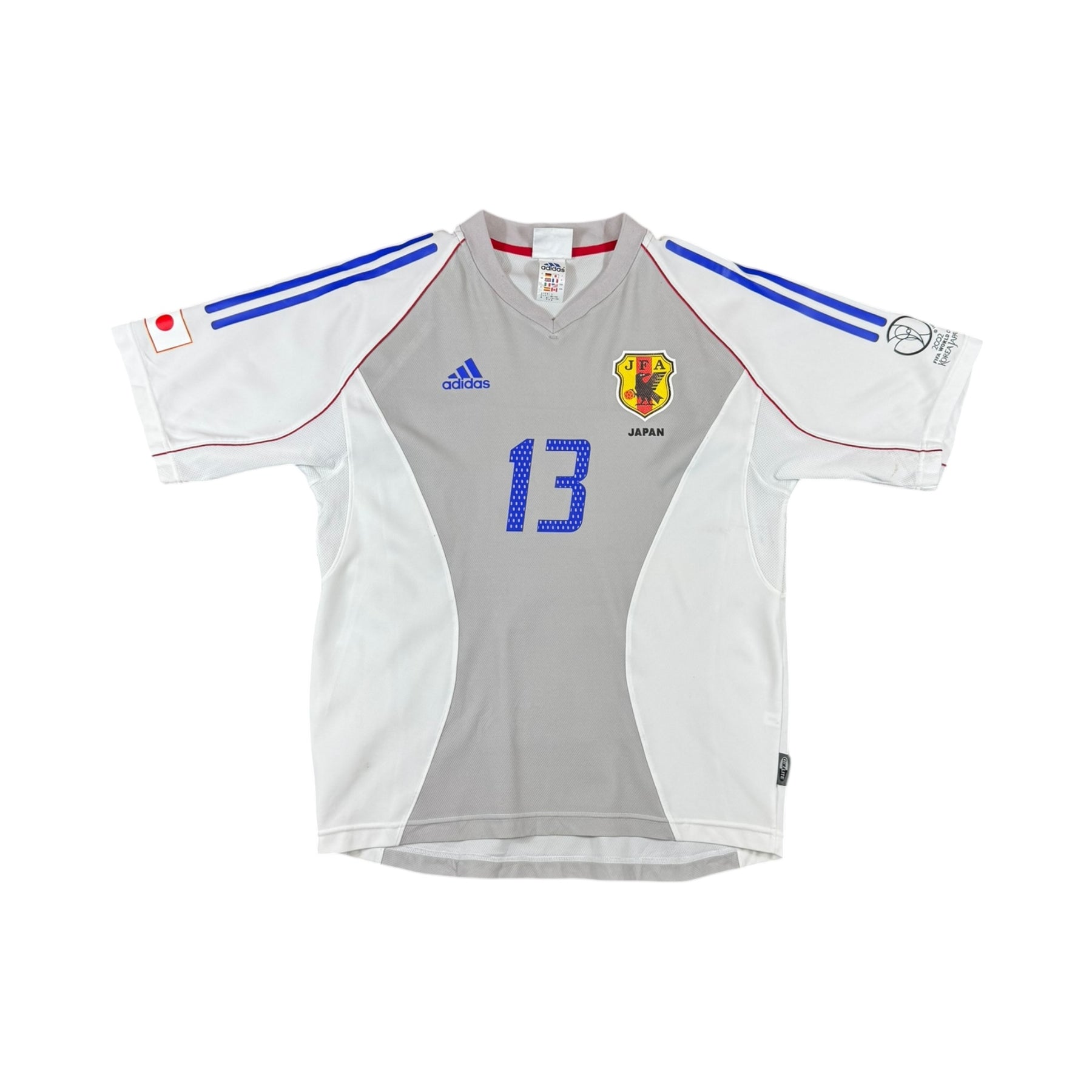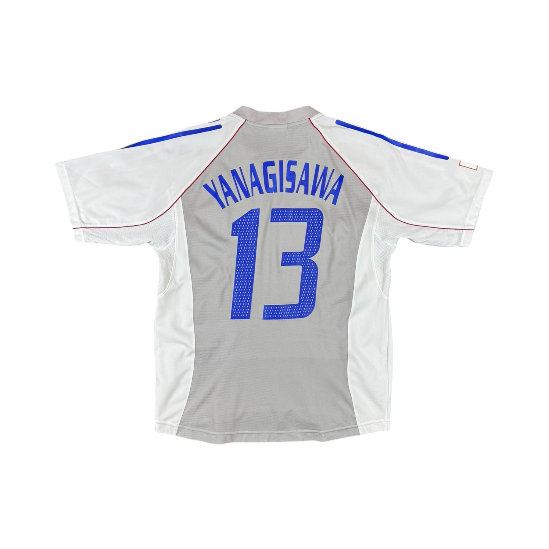 The 2002 Japan Adidas Away Shirt #13 Yanagisawa was worn by Naohiro Yanagisawa, alongside key teammates such as Hidetoshi Nakata, Shunsuke Nakamura, and Junichi Inamoto, during Japan’s historic co-hosting of the 2002 FIFA World Cup. Yanagisawa played an important role in attack for the Samurai Blue, contributing energy, movement, and goal-scoring opportunities as Japan reached the Round of 16, marking their best World Cup performance at the time.