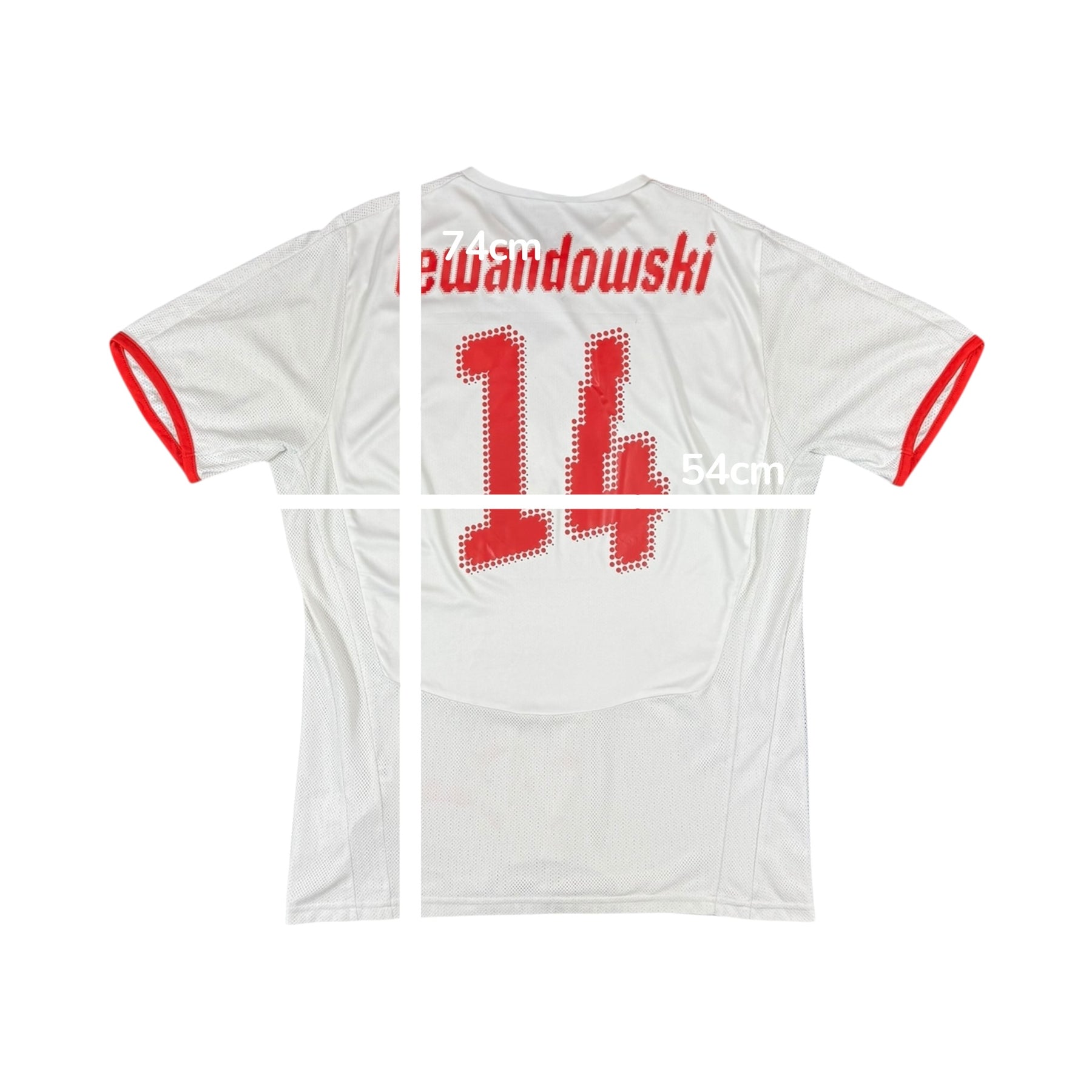 The 2007–09 Poland Puma Home Shirt #14 Lewandowski was worn by Robert Lewandowski, alongside key teammates such as Jakub Błaszczykowski, Wojciech Szczęsny, and Jacek Krzynówek, during a period in which Poland competed in 2010 FIFA World Cup qualifiers. Lewandowski was an emerging talent for the national team, showcasing his goal-scoring ability, movement, and technical skill as he established himself as Poland’s future attacking talisman.
