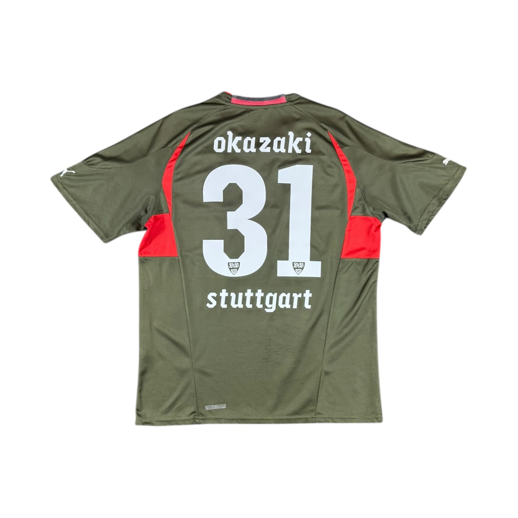 The 2010–11 Stuttgart Puma Third Shirt #31 Okazaki was worn by Shinji Okazaki, alongside key teammates such as Ciprian Marica, Christian Gentner, and Timo Gebhart, during a period in which VfB Stuttgart competed in the Bundesliga and domestic cup competitions, finishing mid-table while developing a young and dynamic squad. Okazaki emerged as an exciting attacking talent, showcasing his pace, work rate, and goal-scoring instinct.