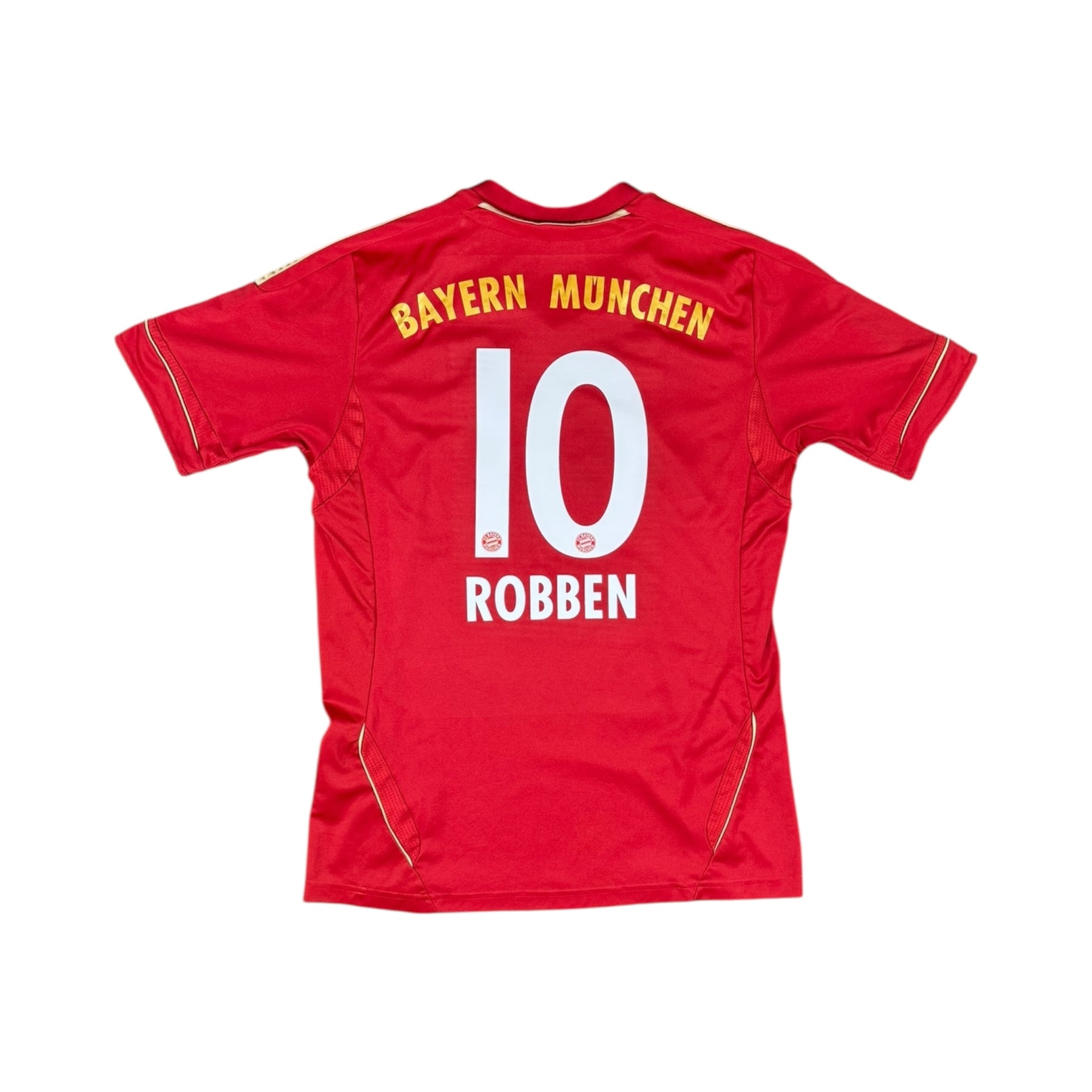 The 2011–13 Bayern Munich Adidas Home Shirt #10 was worn by Arjen Robben during Bundesliga seasons featuring key teammates such as Franck Ribéry, Bastian Schweinsteiger, and Manuel Neuer. Bayern competed at the top of German football under managers Jupp Heynckes (2011–12) and Pep Guardiola (2013), showcasing attacking brilliance, tactical discipline, and midfield creativity. The team won the Bundesliga in both the 2011–12 and 2012–13 seasons, continuing their domestic dominance.
