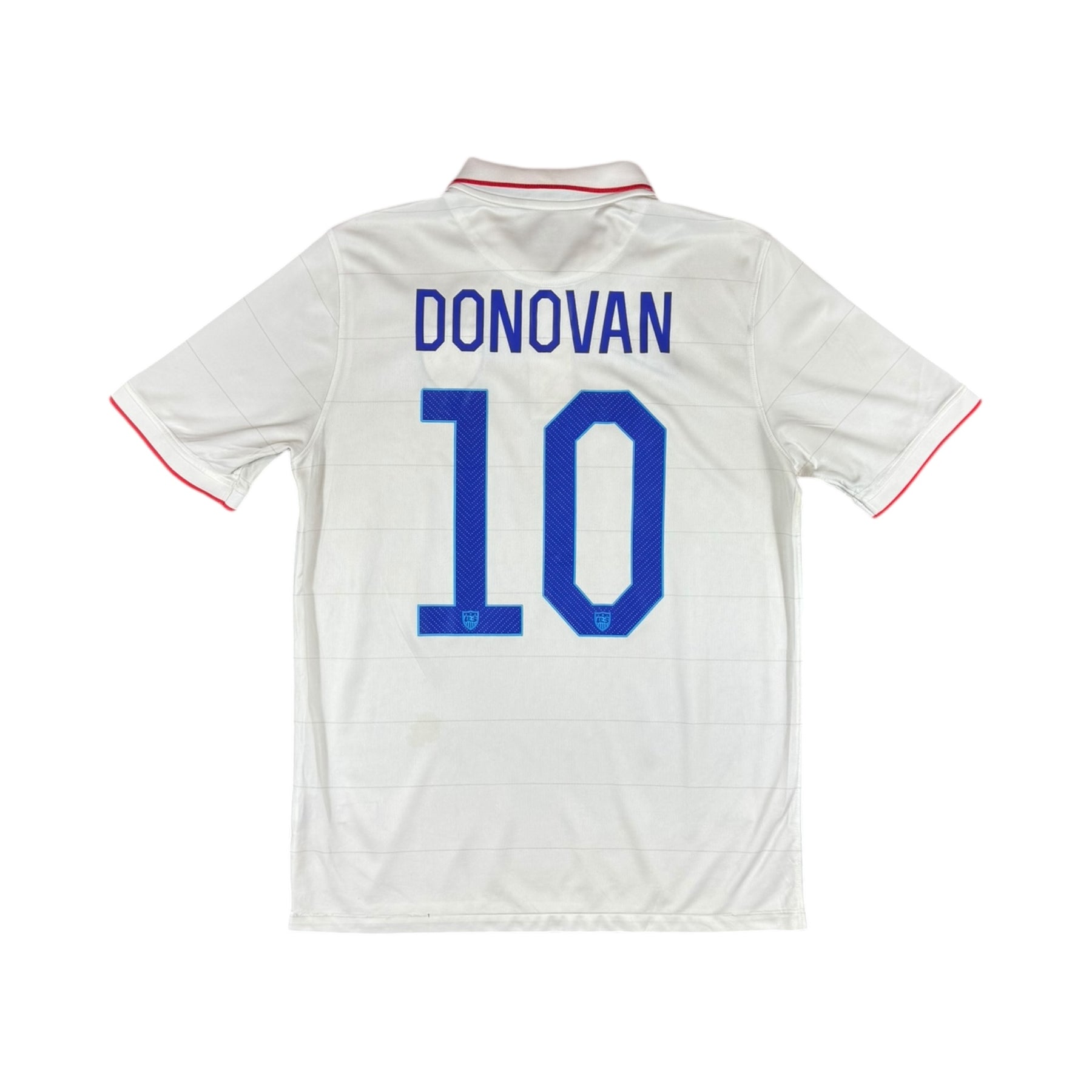 The 2014 USA Nike Home Shirt #10 DONOVAN features a clean white design with subtle grey detailing and a classic polo-style collar, symbolising the pride and professionalism of U.S. Soccer. Printed with Landon Donovan, who was controversially left out of the 2014 World Cup squad, this shirt pays tribute to the nation’s all time great. Donovan’s vision, leadership, and clutch performances including his unforgettable 2010 World Cup goal against Algeria made him a legend of American football.