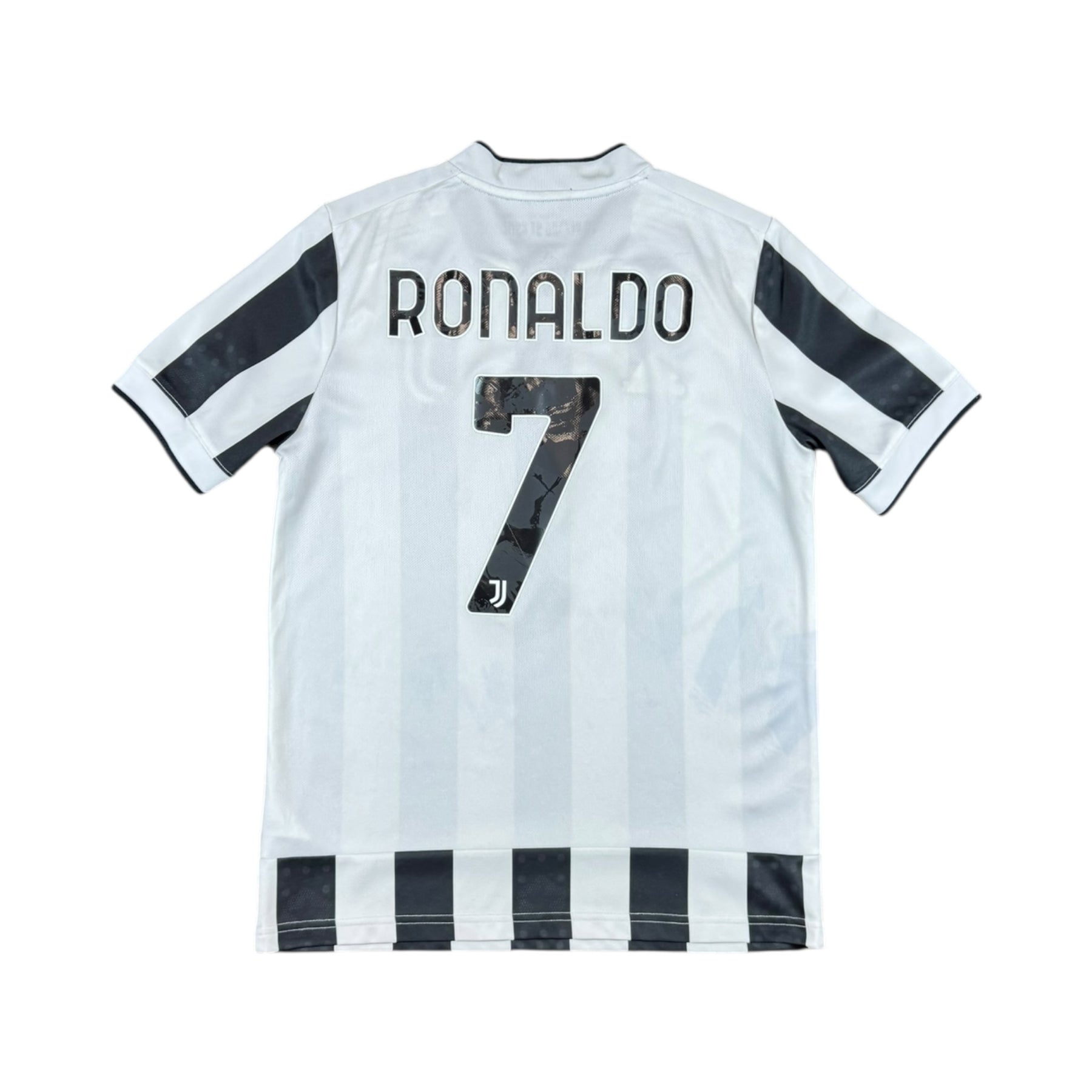 The 2021–22 Juventus Adidas Home Shirt #7 Ronaldo was worn by Cristiano Ronaldo during a season where Juventus finished 4th in Serie A, securing Champions League qualification. Key teammates included Paulo Dybala, Gianluigi Donnarumma, Leonardo Bonucci, and Matthijs de Ligt, who all played pivotal roles in the campaign.
