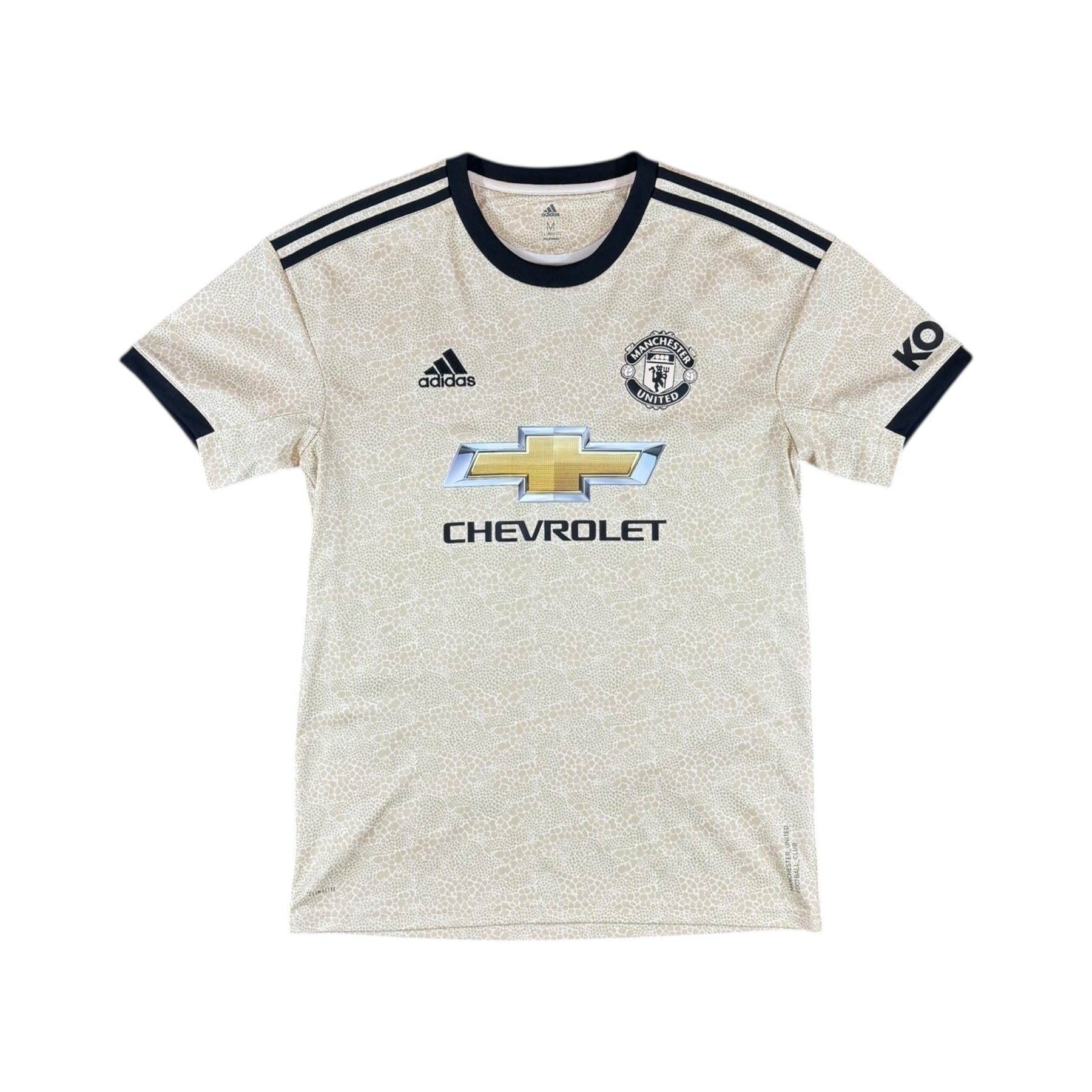The 2019–20 Manchester United Adidas Away Shirt was worn during a Premier League season featuring key players such as Marcus Rashford, Bruno Fernandes, and Paul Pogba. United competed domestically and in Europe under manager Ole Gunnar Solskjær, showcasing attacking pace and midfield creativity.