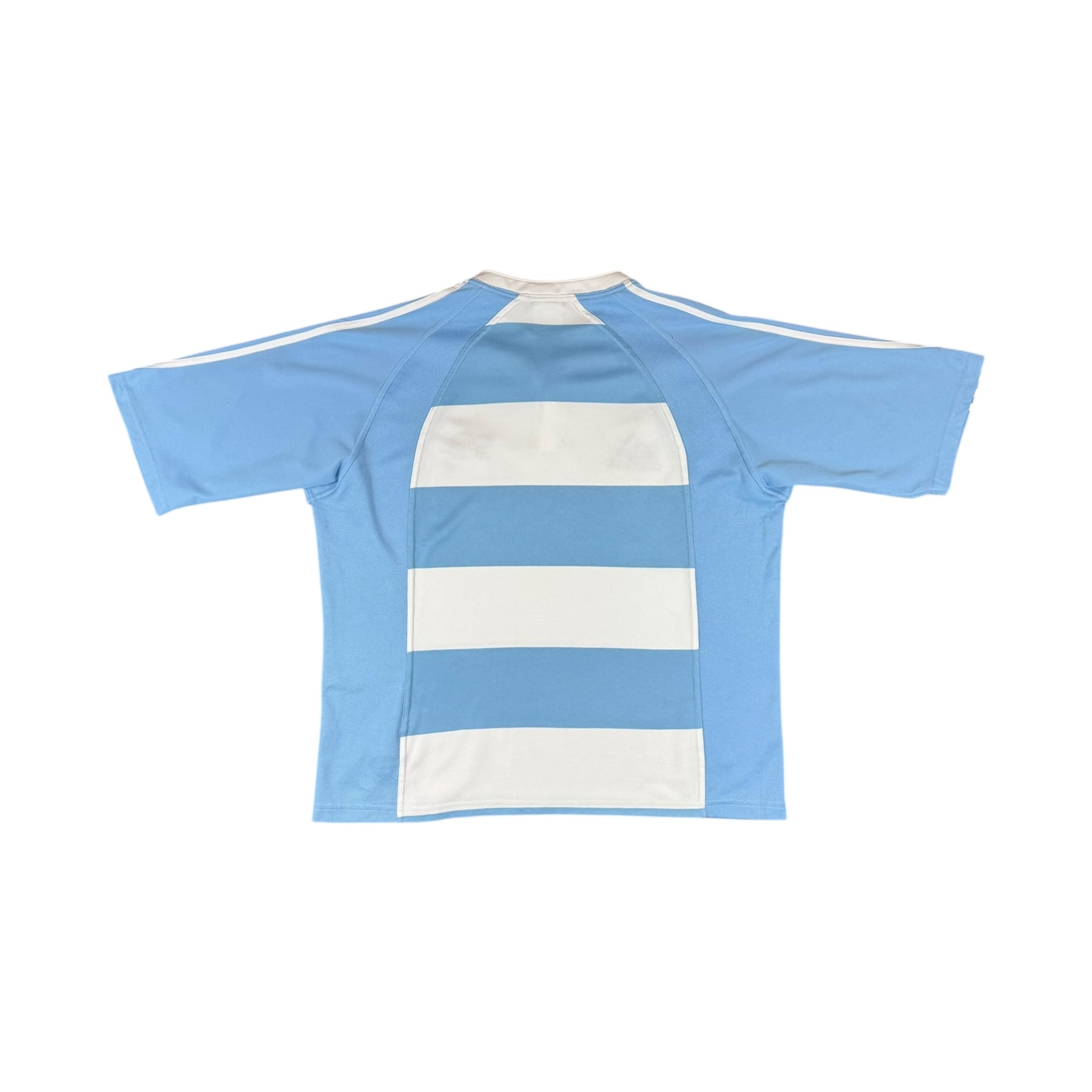 The 2006-07 Argentina Adidas Home Rugby Shirt was worn by stars such as Felipe Contepomi, Agustín Pichot, Juan Martín Hernández, and Mario Ledesma during Argentina’s rise on the world stage. Featuring the traditional sky-blue and white hoops, this shirt symbolises Los Pumas’ passion, unity, and pride leading into their historic 2007 Rugby World Cup campaign.