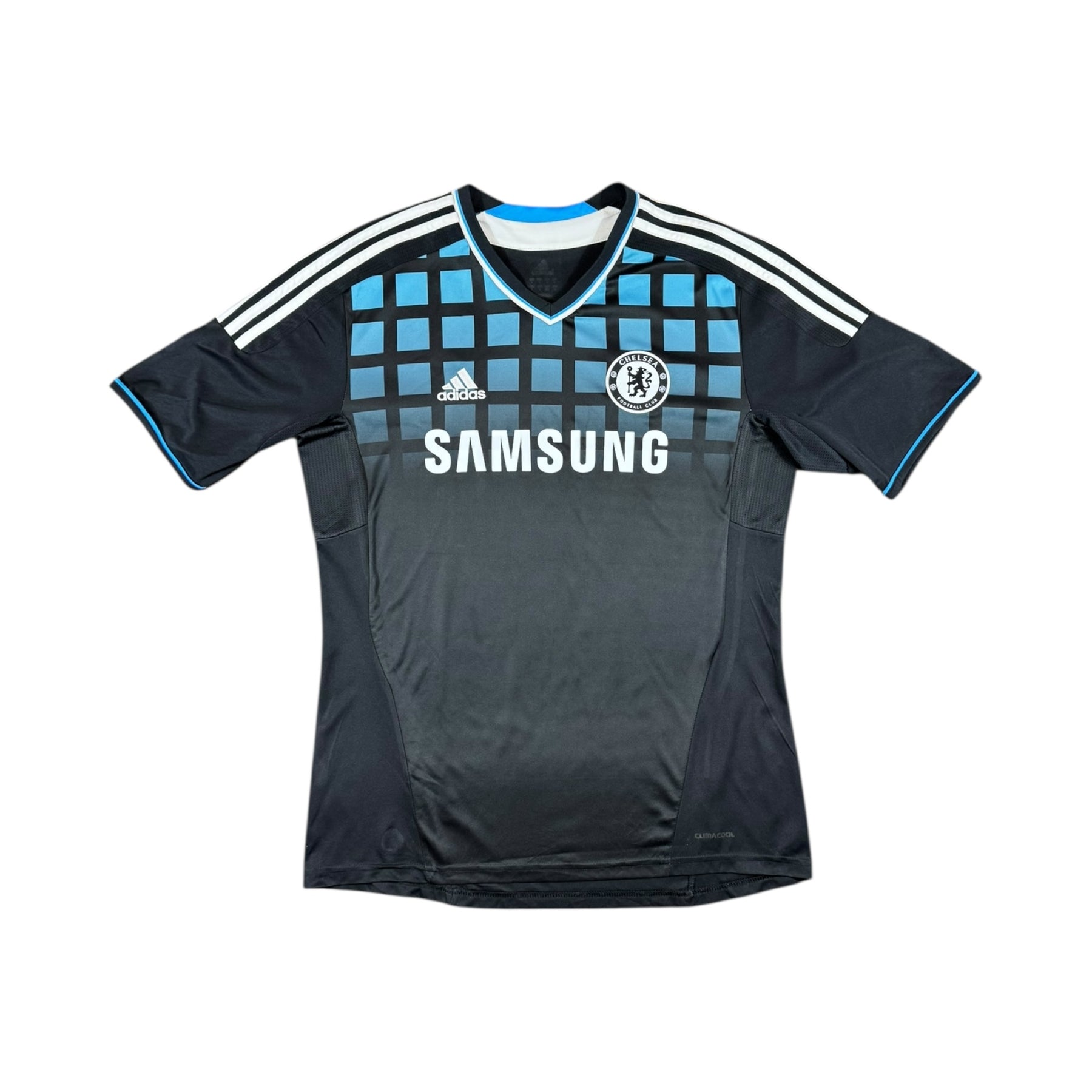 The 2011–12 Chelsea Adidas Away Shirt features a black base with blue and white detailing, reflecting the club’s modern style while maintaining a classic Premier League aesthetic. Worn by stars like Frank Lampard, Juan Mata, and John Terry, this shirt represents the season when Chelsea achieved Premier League success under Rafael Benítez, along with memorable performances in domestic and European competitions.