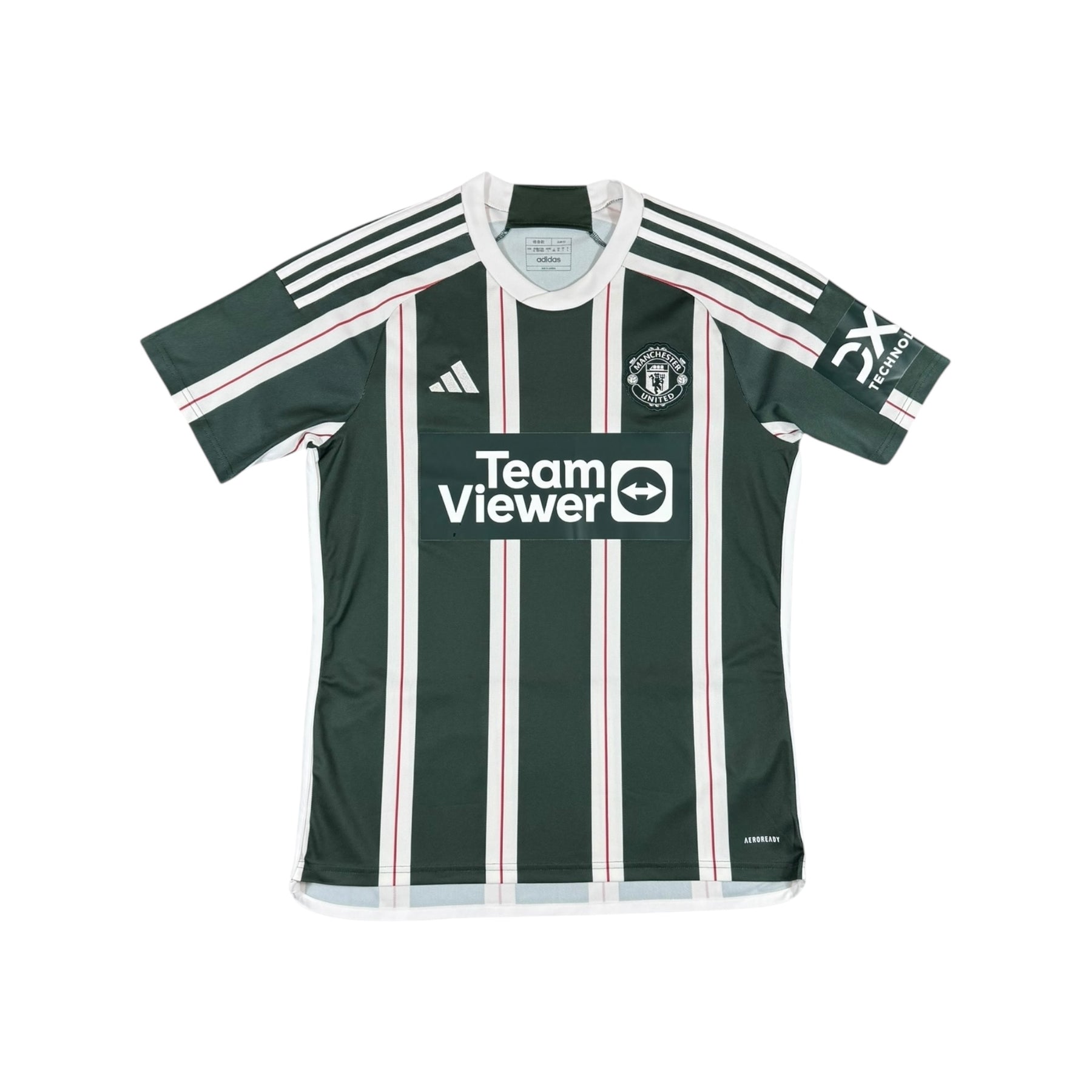 The 2023–24 Manchester United adidas Away Shirt reimagines a classic look with a modern twist. Inspired by the club’s 1909 away kit, this design features bold vertical stripes in white, green, and maroon, celebrating over a century of football heritage while looking fresh for today’s game. Worn by stars like Bruno Fernandes, Marcus Rashford, Casemiro, and Rasmus Højlund, this shirt symbolises United’s blend of history, passion, and attacking football.