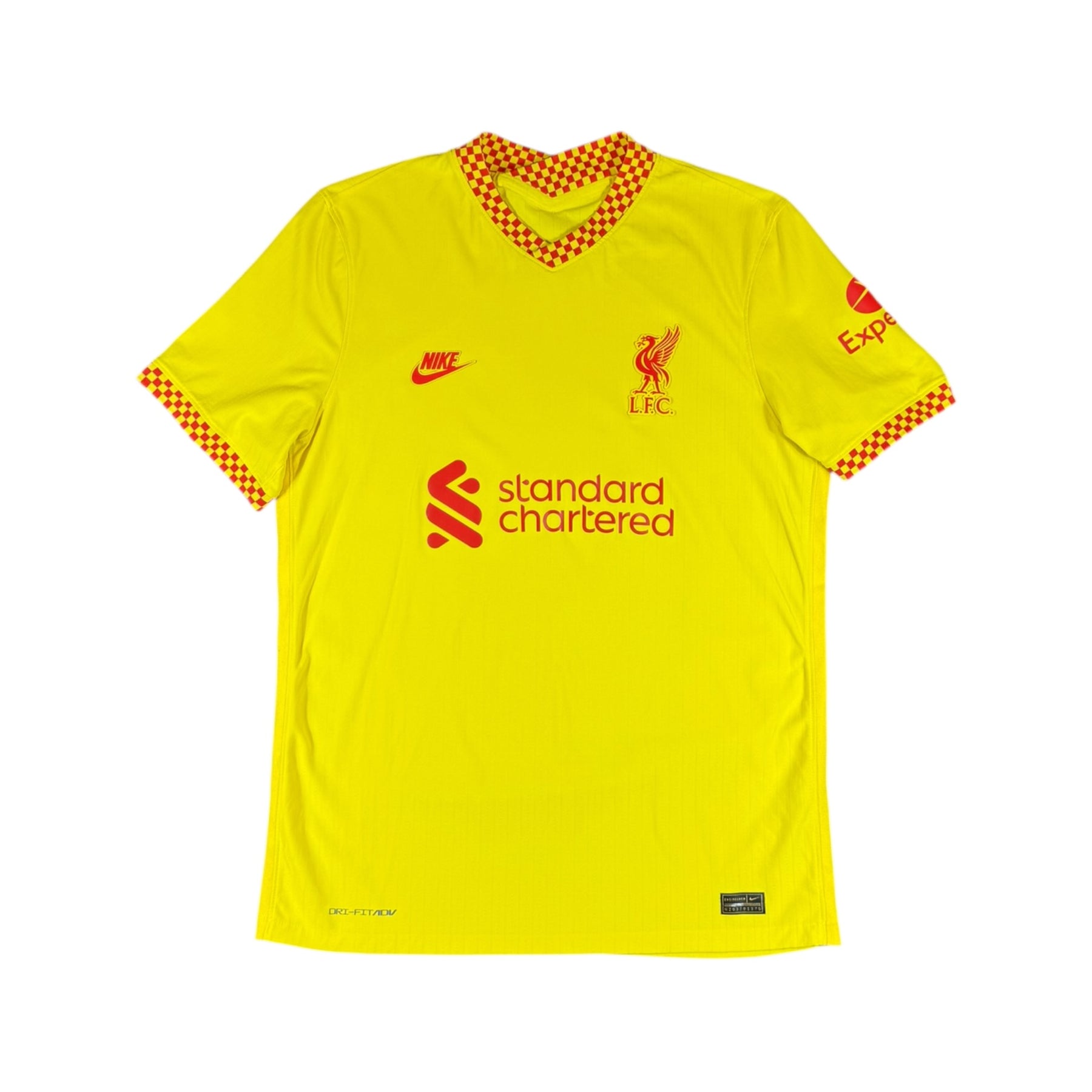 The 2021–22 Liverpool Nike Third Shirt features a bold pale green/seafoam base with dark green detailing and a modern, minimalist crest, making it one of Liverpool’s most distinctive third kits in recent years. It was worn during a historic season in which Liverpool completed an FA Cup and Carabao Cup double and pushed Manchester City to the final day of the Premier League.