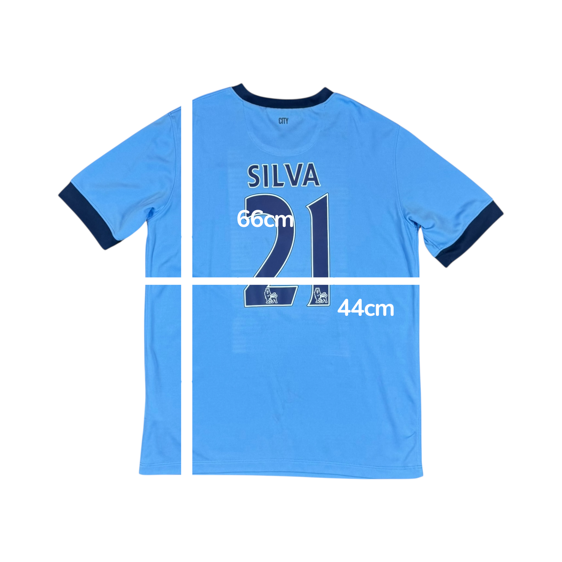 The 2014–15 Manchester City Nike Home Shirt #21 SILVA, worn by star midfielder David Silva. Featuring City’s iconic sky-blue design, this shirt represents a season where Manchester City competed strongly in the Premier League and domestic cups, with Silva orchestrating the team’s attacking play.
