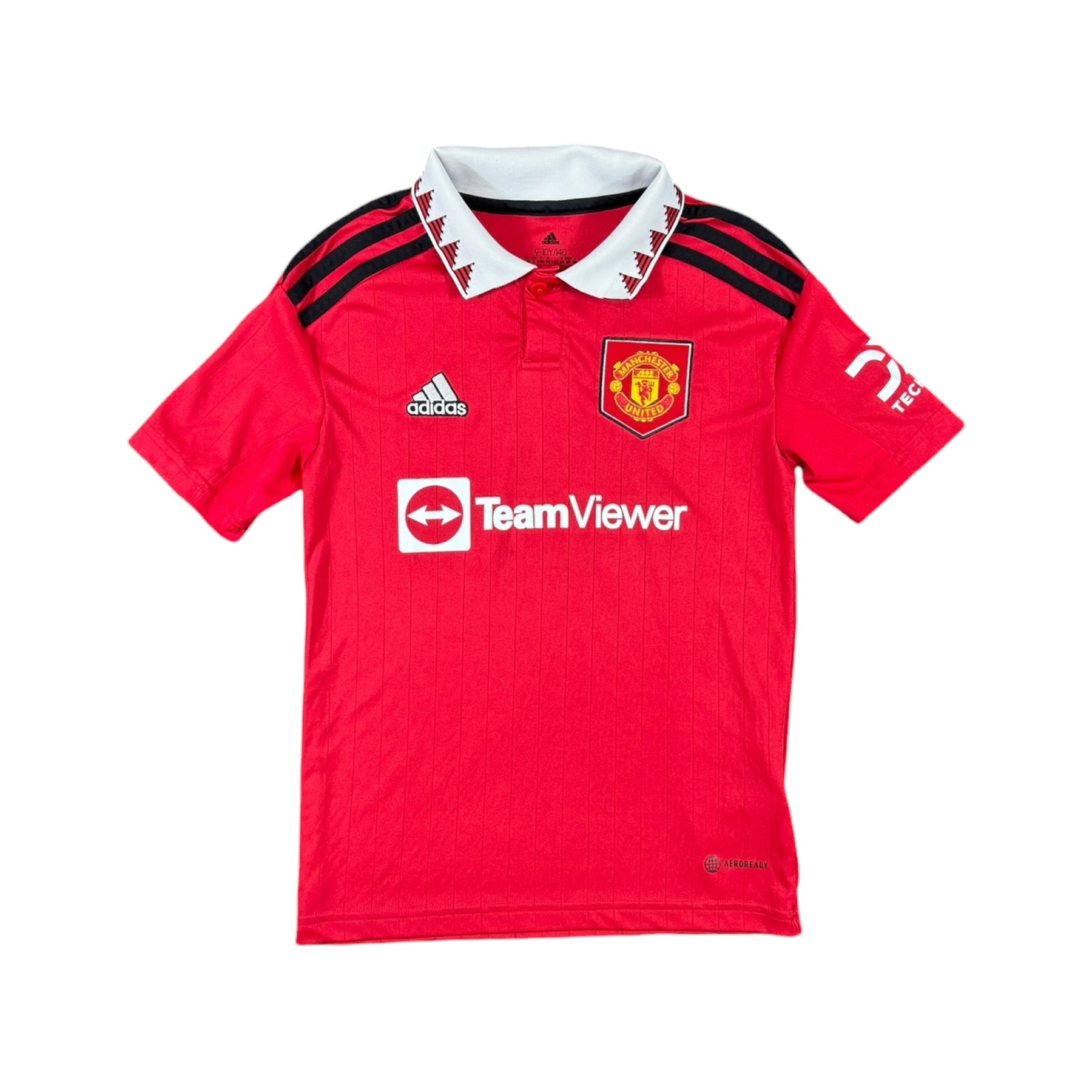 The 2022-23 Manchester United Adidas Home Shirt #7 Ronaldo was worn by Cristiano Ronaldo in his final season at the club, where he featured alongside stars such as Marcus Rashford, Bruno Fernandes, Lisandro Martínez, and Casemiro before departing mid-season. United finished 3rd in the Premier League and returned to the Champions League under Erik ten Hag.
