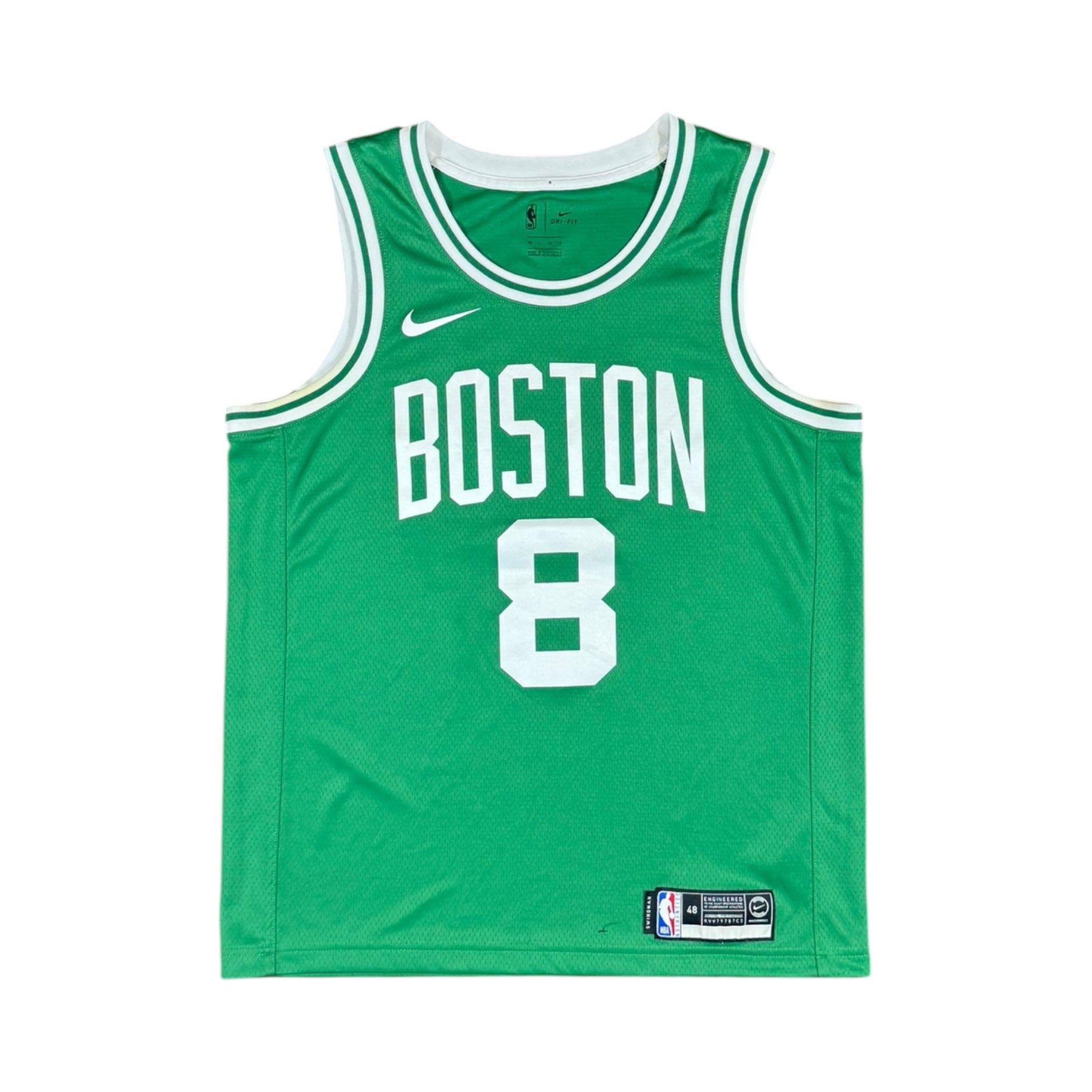 The 2023–24 Boston Celtics Nike Home Basketball Jersey #8 WALKER, worn by star guard Kemba Walker. Featuring the Celtics’ classic green and white home design, this jersey represents a season where Boston competed strongly in the NBA Eastern Conference, with Walker leading the team with scoring, playmaking, and veteran leadership.