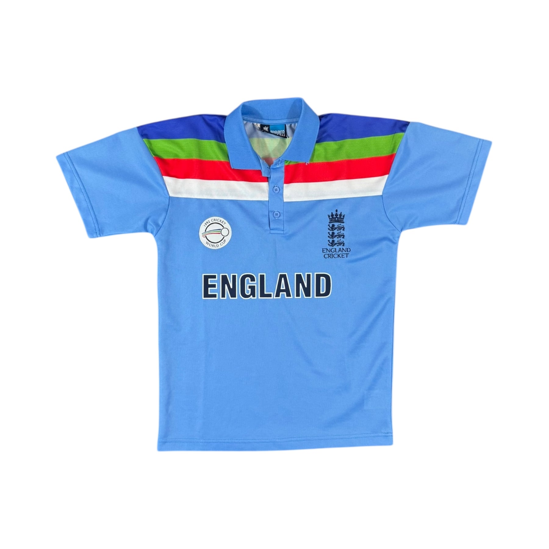 The 1992 England Cricket Home Shirt was worn by stars such as Graham Gooch, Alec Stewart, Ian Botham, and Phil DeFreitas during the memorable 1992 Cricket World Cup campaign, where England reached the final.