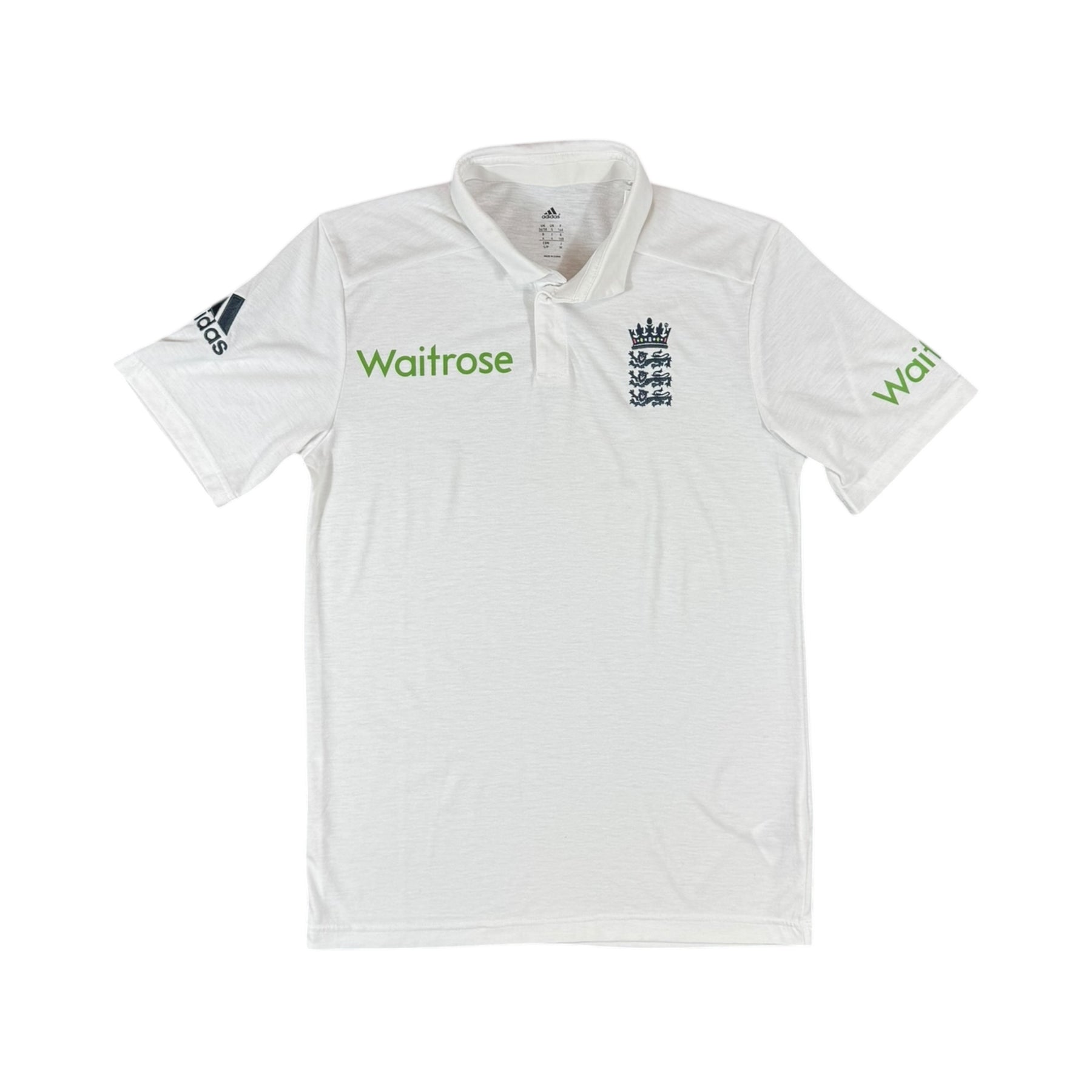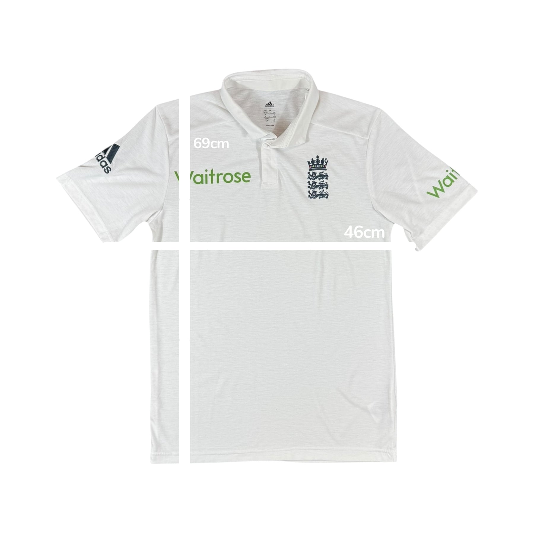 The 2014-16 England Cricket Adidas Test Shirt was worn by stars such as Alastair Cook, Joe Root, James Anderson, and Stuart Broad during a crucial period of Test cricket, including the buildup to England’s 2015 Ashes win.
