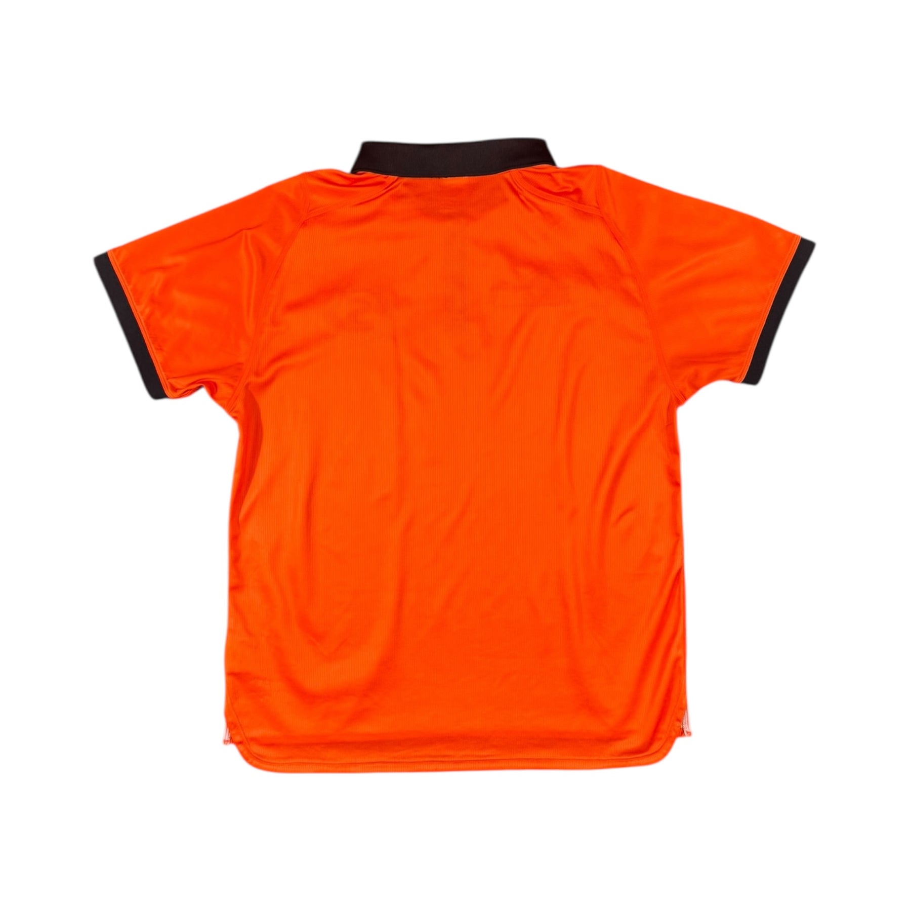 The 2019-20 Perth Scorchers BBL Home Shirt was worn by key players such as Mitchell Marsh, Ashton Turner, Jhye Richardson, and Cameron Bancroft during the Big Bash League season. Featuring a bold orange base with black side panels, the Scorchers logo on the chest, and Nike Dri‑FIT performance fabric, this shirt combines on-field performance technology with the team’s iconic home colours and fan-favourite style.