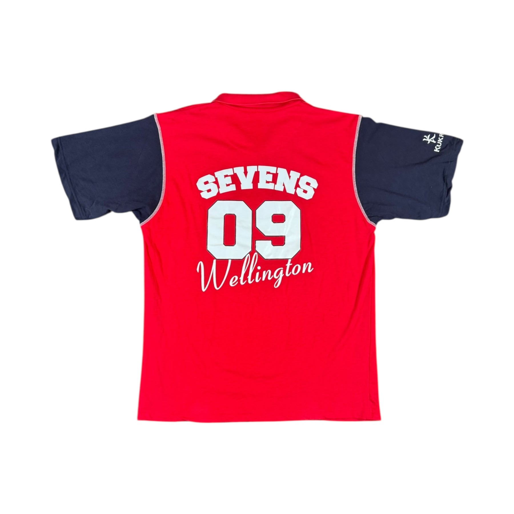 The 2009 New Zealand Sevens Kukri Rugby Shirt was worn during the IRB Sevens World Series, with key players including Tim Mikkelson, DJ Forbes, Jone Tawake, Rieko Ioane, and Ngarohi McGarvey-Black representing the All Blacks Sevens squad.