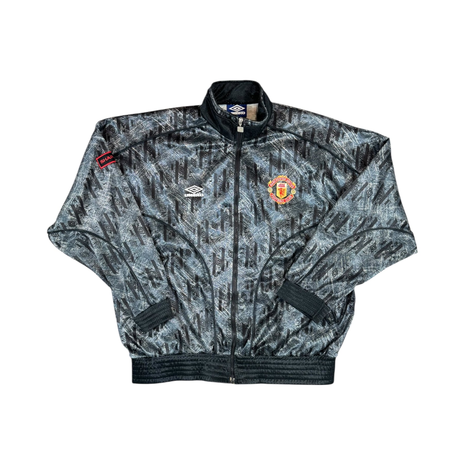 Worn by the Manchester United squad during the 1992–93 season, this track jacket comes from a historic campaign where United won the inaugural Premier League title, ending a 26-year wait for a league championship. The squad featured legendary players such as Eric Cantona, Ryan Giggs, Mark Hughes, and Peter Schmeichel