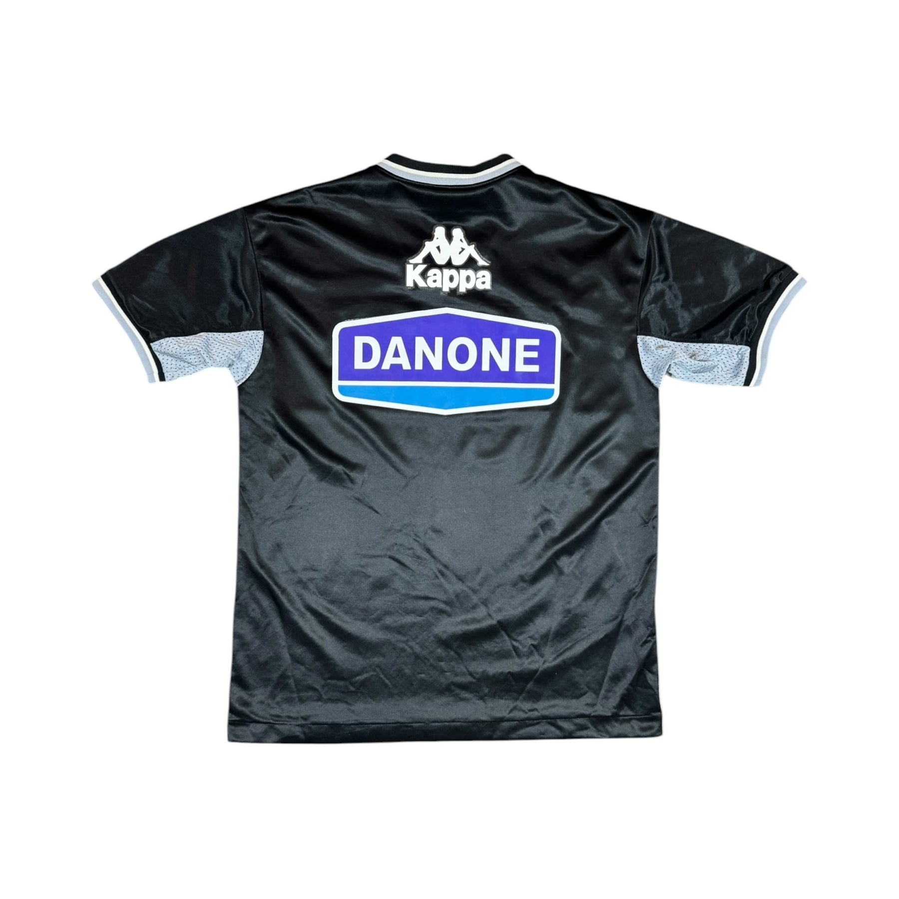 Official Kappa Juventus training shirt from the 1995-96 season the year the Old Lady conquered Europe for the first time in 11 years, beating Ajax on penalties in Rome to win the UEFA Champions League under Marcello Lippi. The squad wearing this in training included Vialli, Ravanelli, Del Piero, Deschamps, Ferrara and Peruzzi one of the most celebrated Juventus sides ever assembled.