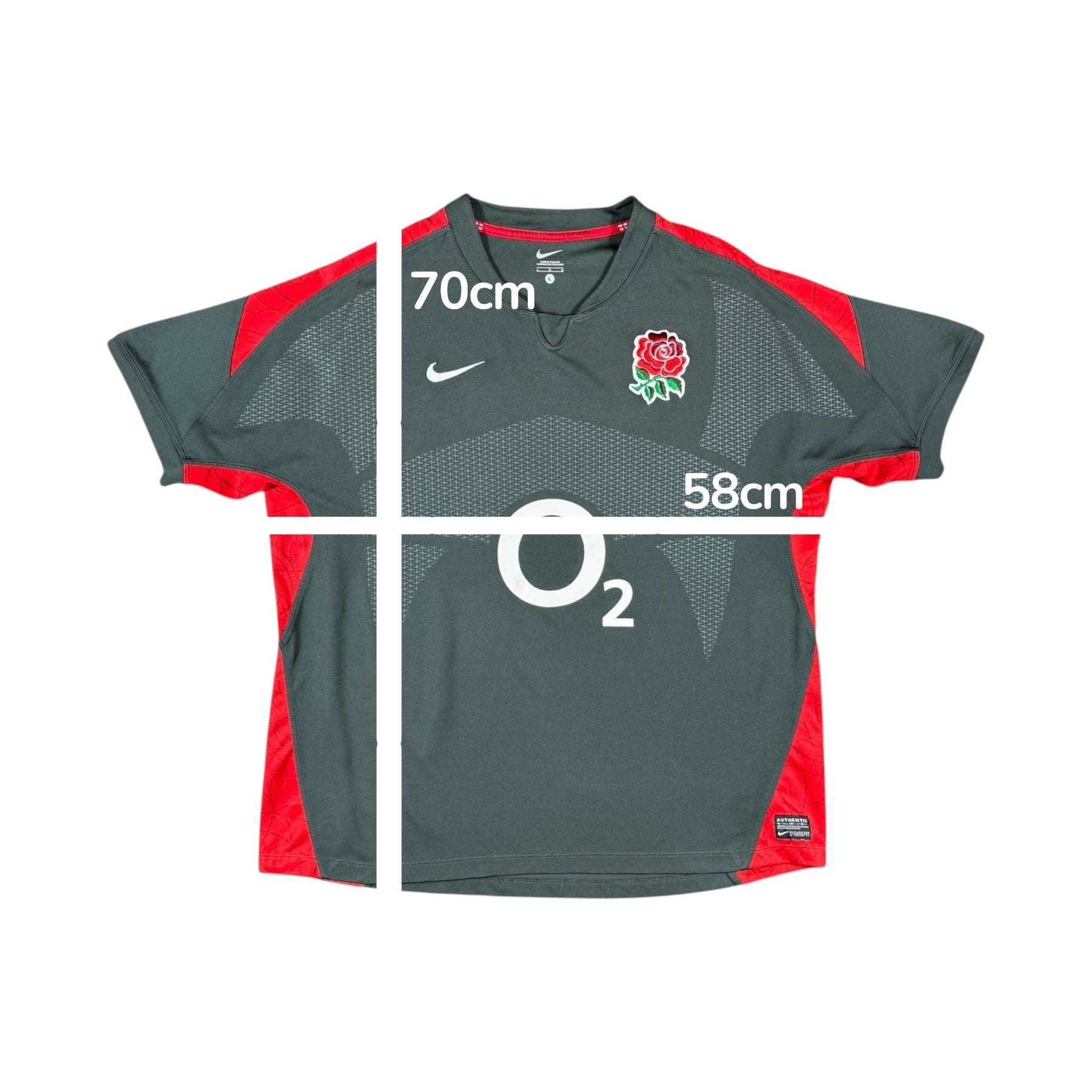 The 2002 England Nike Away Rugby Shirt was worn by stars such as Jonny Wilkinson, Martin Johnson, Jason Robinson, and Lawrence Dallaglio during international fixtures. Featuring a black base with red panels on the shoulders and the iconic red rose embroidered on the chest.