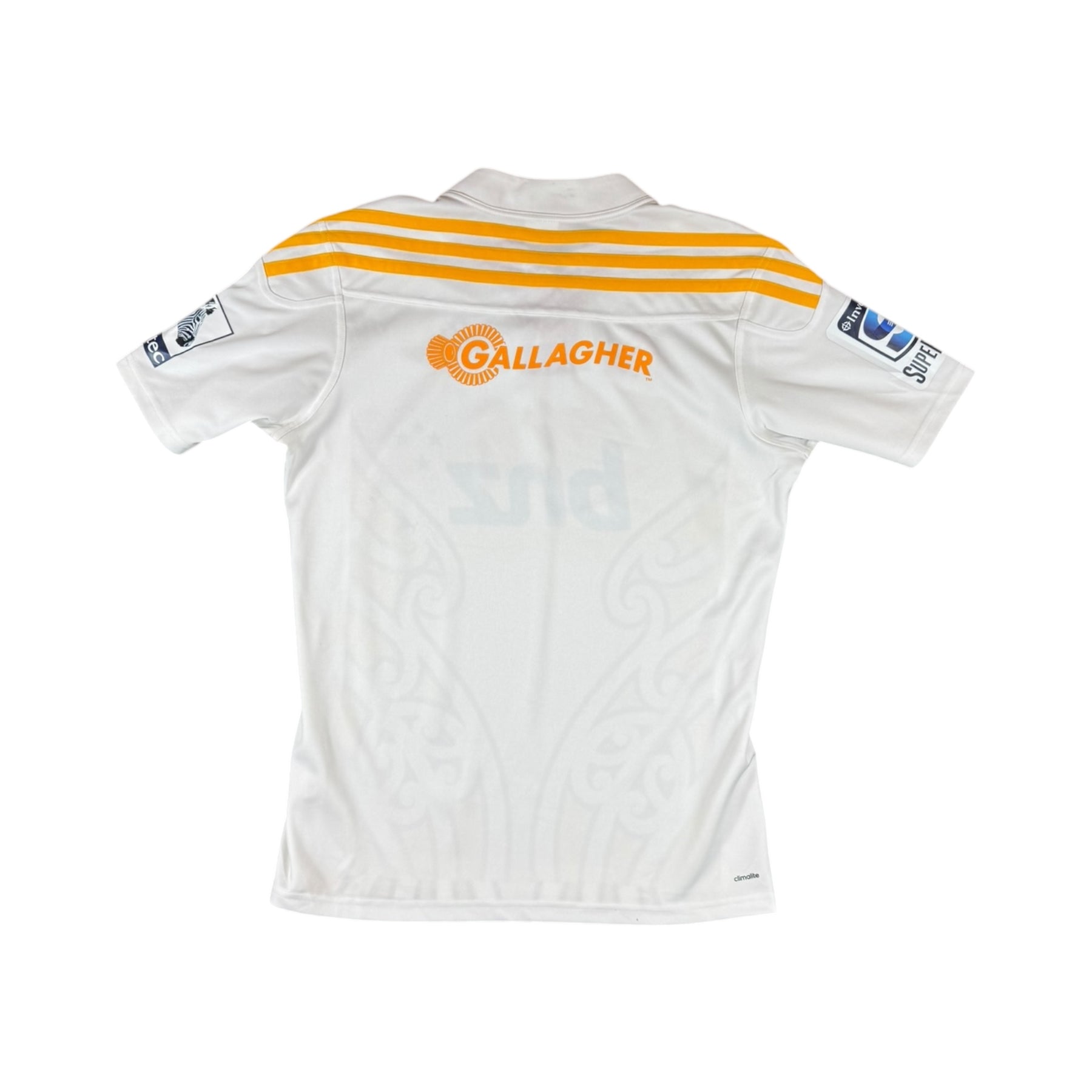The 2014 Waikato Chiefs Adidas Super Rugby Home Shirt was worn by key Chiefs players such as Aaron Cruden, Brodie Retallick, and Robbie Fruean during the 2014 Super Rugby season, defending back-to-back titles after their 2012 and 2013 championship wins and competing at the highest level of Southern Hemisphere rugby.