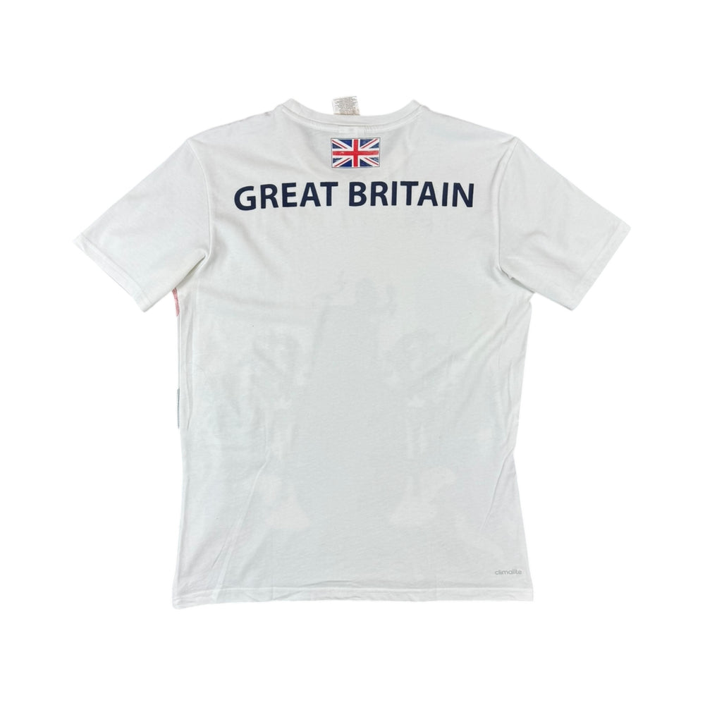 The 2016 Great Britain Adidas Olympics Training T‑Shirt was worn by Team GB athletes during preparation for the Rio 2016 Olympic Games, including rugby sevens, athletics, and other squad members.