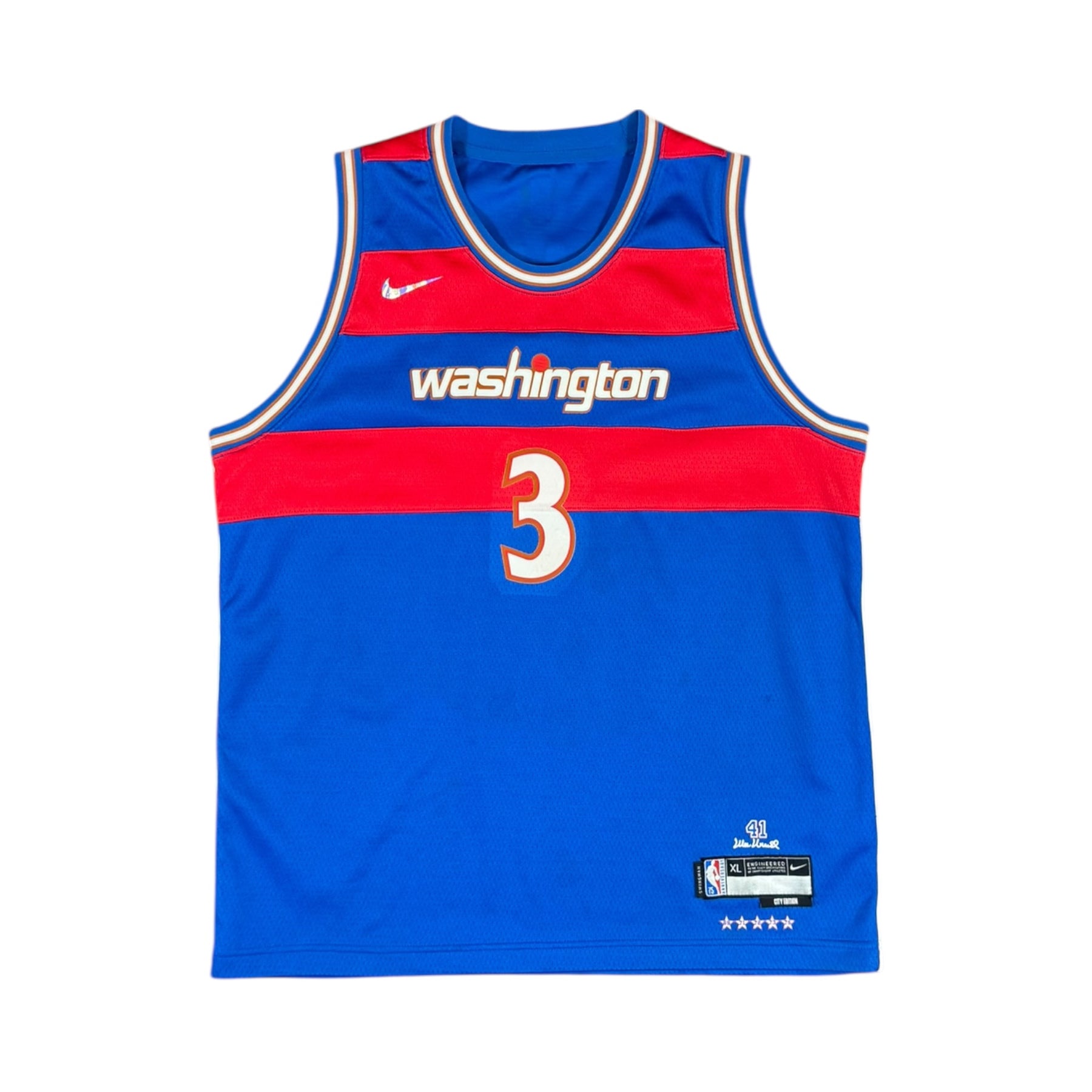 The 2021–22 Washington Wizards Nike Basketball Jersey #3 BEAL, worn by star guard Bradley Beal. Featuring the Wizards’ modern red, white, and blue design, this jersey represents a season where Washington competed in the NBA Eastern Conference, with Beal leading the team as one of the league’s elite scorers.