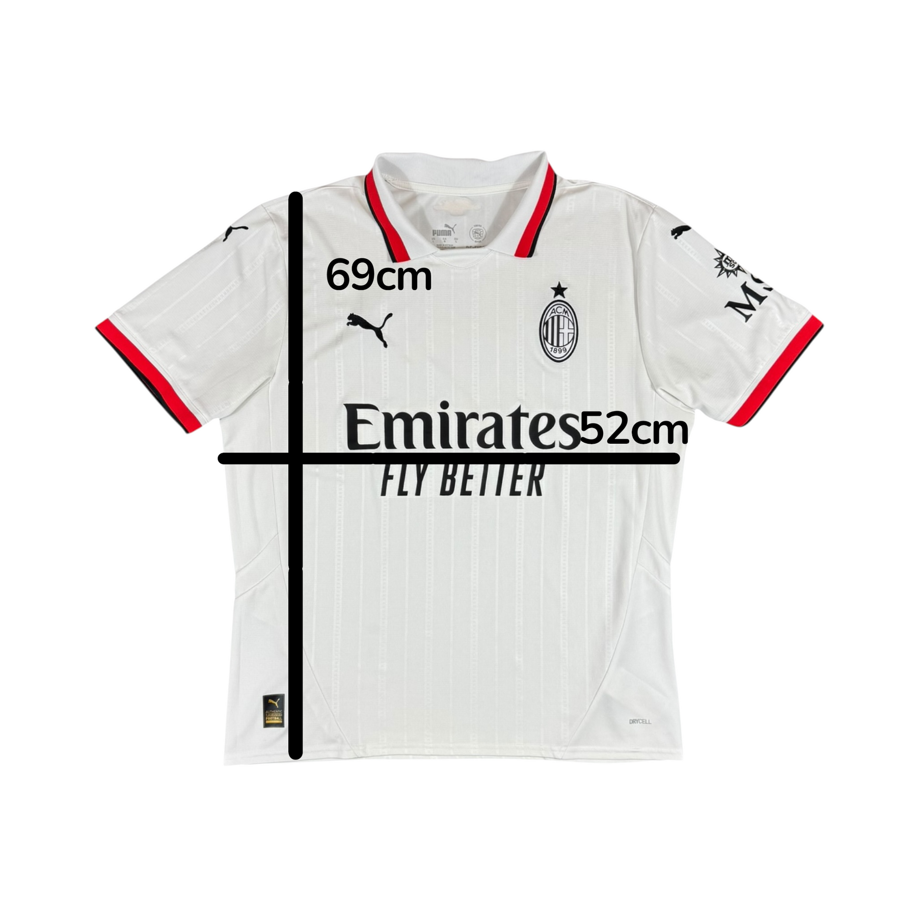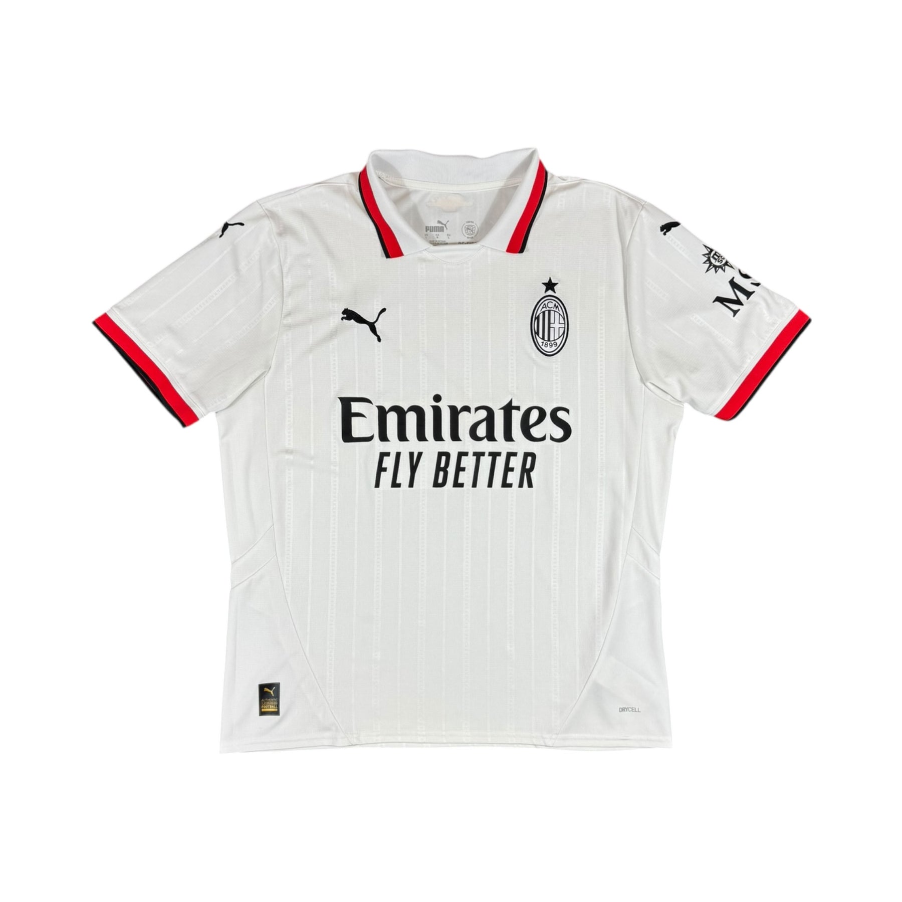 Worn by the AC Milan squad during the 2024–25 season, this away shirt comes from a campaign where Milan compete in Serie A, domestic cup competitions, and European tournaments such as the UEFA Champions League. The squad features key players such as Rafael Leão, Olivier Giroud, Theo Hernández, and Mike Maignan