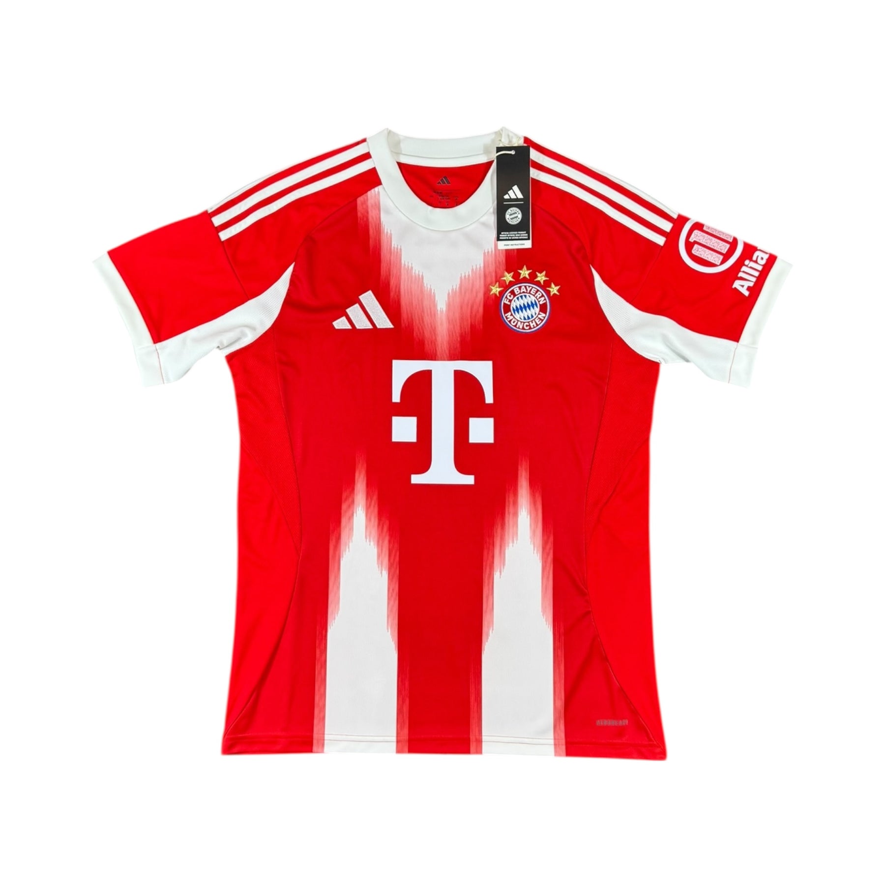 Designed by Adidas, this 2025–26 home shirt honours tradition while introducing a bold modern twist with a classic red base accented by a stylised white “M” graphic on the chest, representing the club’s deep connection to its home city of Munich and its identity as Mia San Mia (“We are who we are”).
