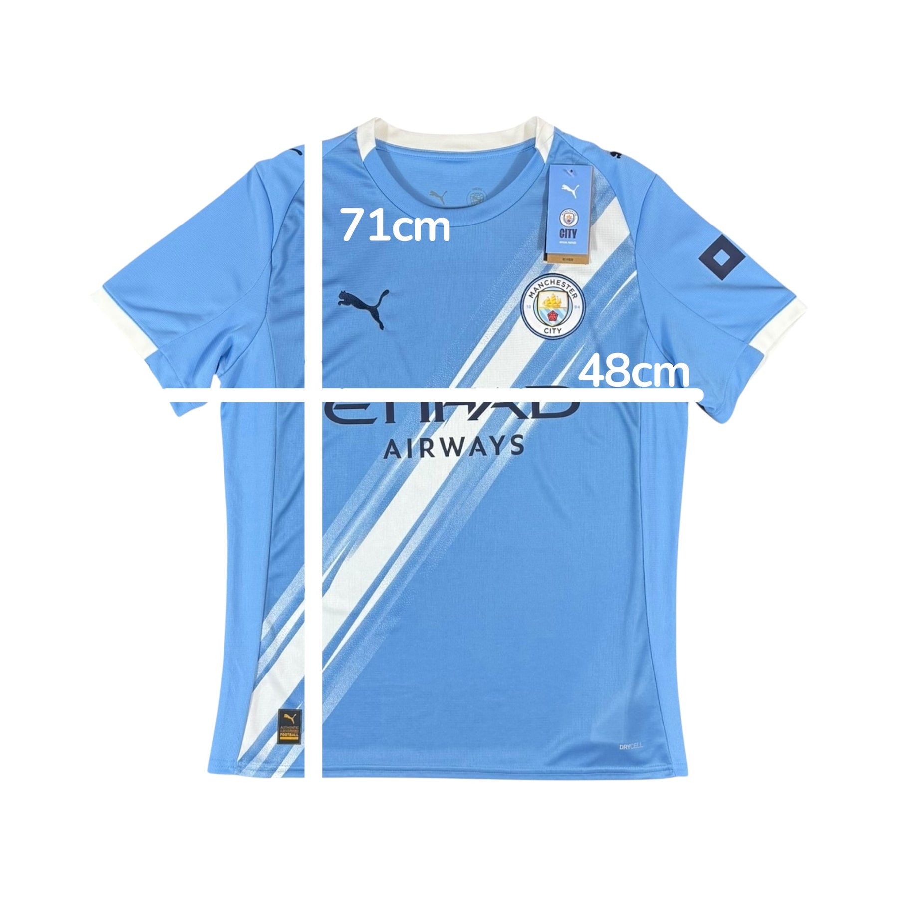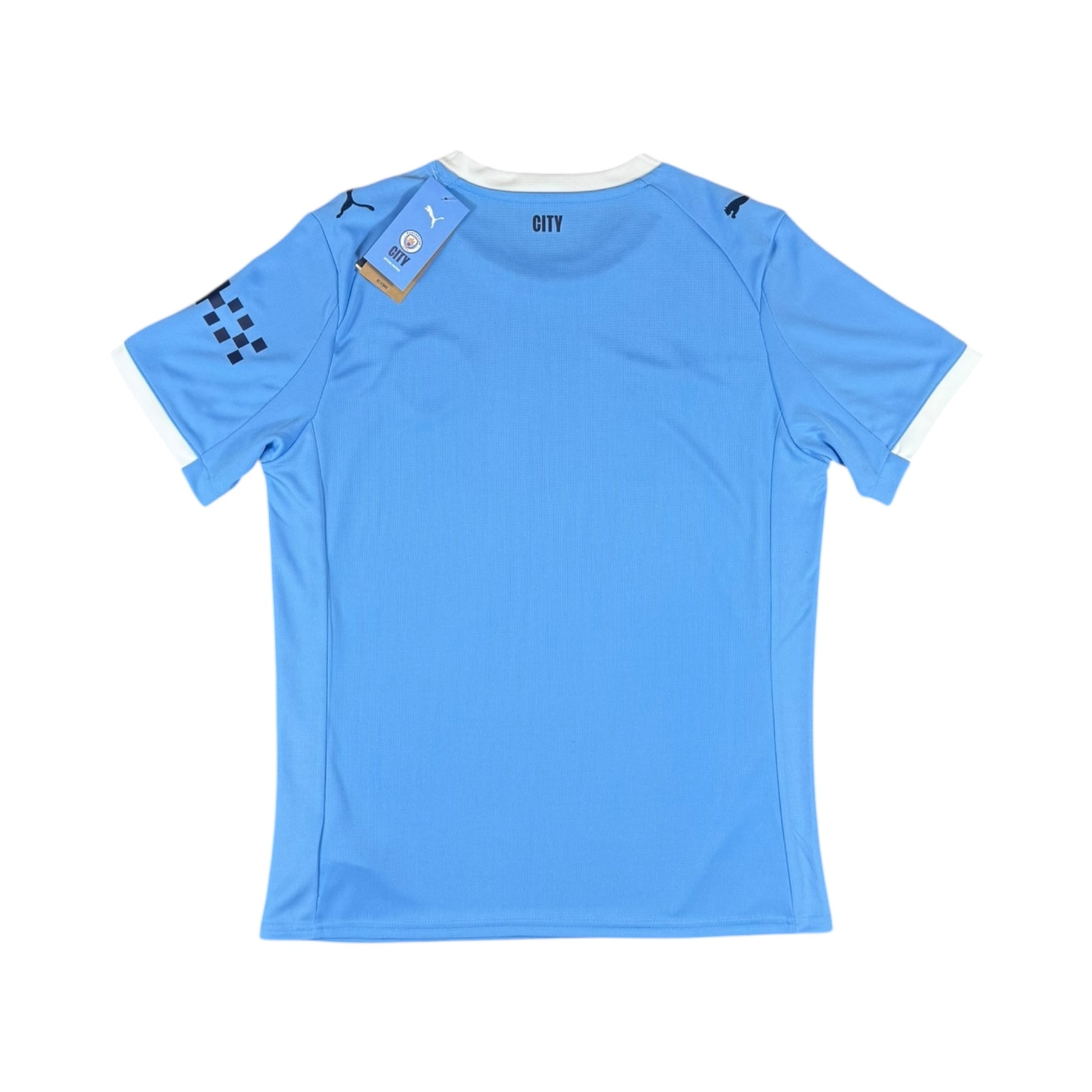 The 2025–26 Manchester City Puma Home Shirt features a striking sky‑blue base with a white diagonal sash design making its debut on a City home kit, worn by stars including Erling Haaland, Phil Foden, Manuel Akanji and Oscar Bobb across Premier League, FA Cup and international competitions.
